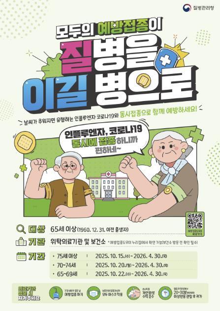 또한, 인플루엔자는 코로나19와 동시 예방접종도 가능하며, 코로나19 예방접종은 ▲면역저하자, 감염취약시설 입원·입소자, 75세 이상 어르신의 경우 10월 15일부터 ▲70세~74세 어르신은 10월 20일부터 ▲65세~69세 어르신은 10월 22일부터 위탁의료기관에 방문하면 접종 할 수 있다.