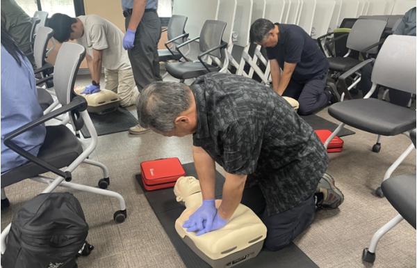 참가자들은 교육용 심폐소생술 모형(애니 인형)을 활용해 직접 가슴압박과 AED 사용법을 체험해 응급상황에 대비한 실질적인 대응 능력을 함양했다.