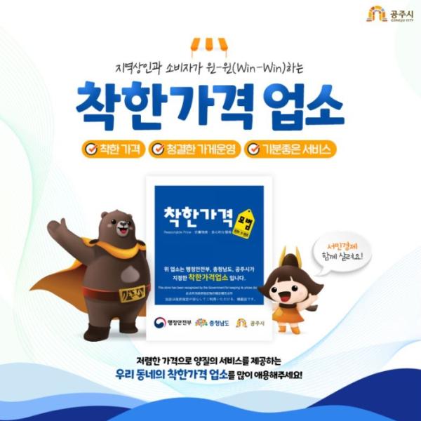 [헬스앤마켓리포터스, 조태익기자] 공주시는 저렴한 가격으로 지역 물가 안정에 기여하고 있는 ‘착한가격업소’를 오는 24일까지 공개 모집한다고 밝혔다.