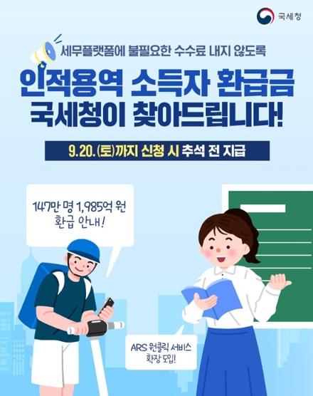 국세청, 인적용역 소득자 환급금 국세청이 찾아드립니다!