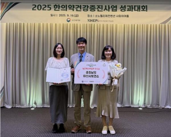 [헬스앤마켓리포터스, 조태익기자] 아산시는 19일 서울 강남구 소노펠리체 컨벤션에서 열린 ‘2025년 한의약건강증진사업 성과대회’에서 보건복지부 장관상(우수상)을 수상했다고 밝혔다.