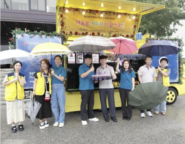 이번 힐링프로그램에서는 사업장 내에 커피차를 마련해 근로자들이 커피와 음료를 즐기며 업무 스트레스와 피로를 해소할 수 있는 시간을 제공했다.
