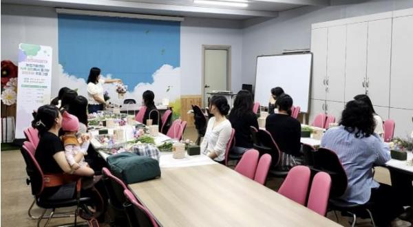 아로마테라피를 활용한 손세정제 만들기, 감성 꽃바구니 제작, 수납정리 실습, 치유쉼터에서의 기타 공연 등 다채로운 프로그램이 운영돼 참여자들의 높은 만족을 이끌어냈다.