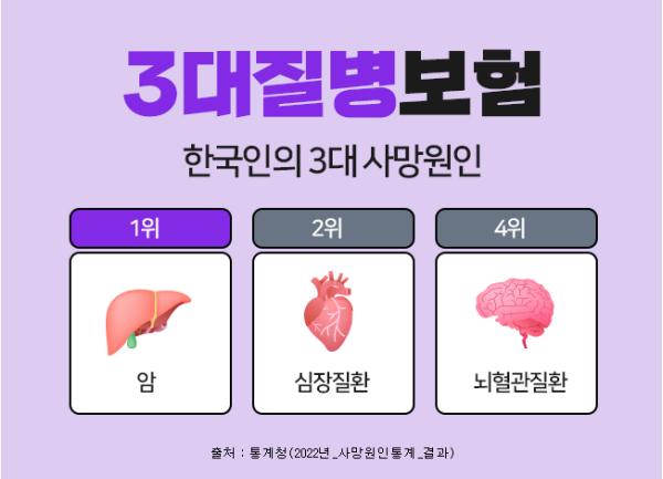 [헬스앤마켓리포터스, 강동진기자] 3대질병으로 일컬어지는 암, 뇌혈관질환, 심혈관질환은 한국인의 주요 사망원인에서 상위를 차지하고 있으며, 이에 대한 진단비를 집중적으로 보장해 주는 보험상품을 3대질병진단비 보험이라 할 수 있다.