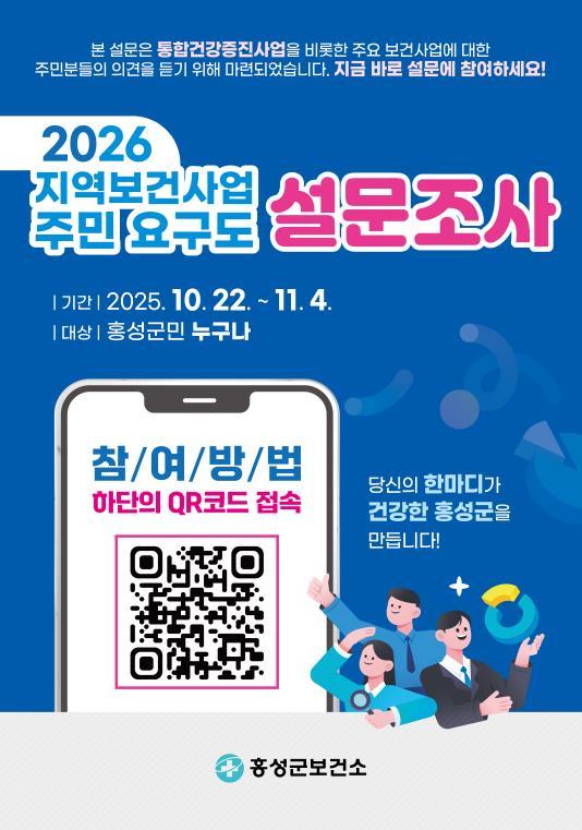 홍성군, 지역보건사업 주민 요구도 설문조사 실시