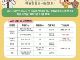 최승자 보건소장 직무대리는 “대상포진과 파상풍 등은 치료비 부담이 크고 후유증이 심한 질환이지만, 예방접종으로 충분히 막을 수 있다”며 “정선군은 주민 건강을 지키는 보편복지의 일환으로 예방접종 지원을 지속 확대하고, 누구나 경제적 부담 없이 건강한 삶을 누릴 수 있도록 하겠다”고 말했다.