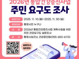 [헬스앤마켓리포터스, 조태익기자] 통영시는 2026년 통합건강증진사업의 효과적이고 실효성 있는 추진을 위해 오는 10일(월)부터 30일(일)까지 3주간 ‘통합건강증진사업 주민요구도 조사’를 실시한다.