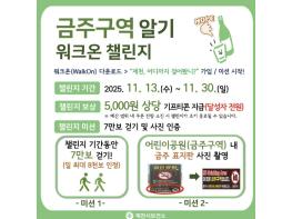 챌린지 미션은 △기간 중 7만보 달성(1일 최대 8,000보 인정) △제천시 내 어린이공원 방문 후 금주구역 표지판 사진 인증으로 구성된다. 미션을 모두 완료한 시민에게는 전원 모바일 상품권(5,000원 상당)이 지급된다.