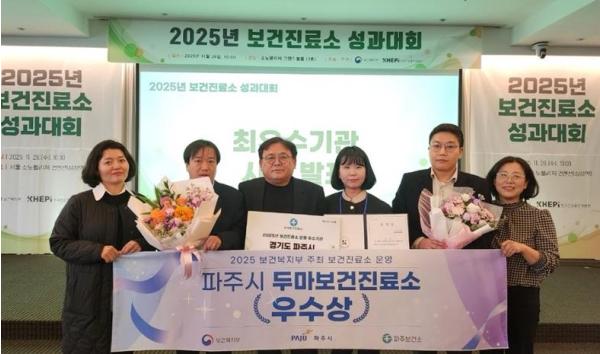 [헬스앤마켓리포터스, 조태익기자] 파주시는 지난 26일 보건복지부가 주최한 녩년 보건진료소 운영 성과대회’에서 두마보건진료소가 건강 증진 사업 분야 우수기관으로 선정됐다고 밝혔다. 이는 작년 어유지보건진료소의 수상에 이어 2년 연속 우수상이라는 값진 성과이다.