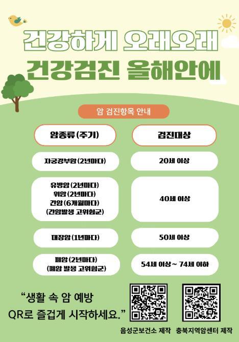 [헬스앤마켓리포터스, 조태익기자] 음성군보건소는 2026년 짝수년생을 대상으로 국가암검진을 본격적으로 시행한다.