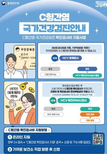 지원 대상은 2026년 국가건강검진을 받는 만 56세(1970년생) 시민 중 C형 간염 항체 검사에서 양성 판정을 받은 사람이다.