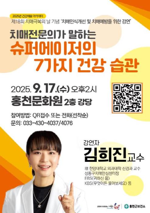 원은숙 홍천군보건소장은 “이번 강연을 통해 지역 주민들이 치매를 예방하고 관리하는 데 실질적인 도움이 되길 기대한다”라고 전했다.