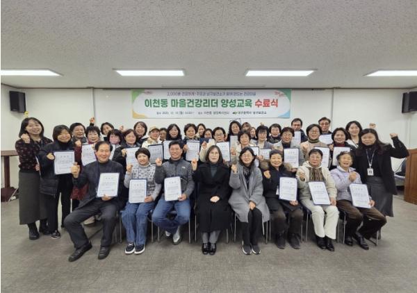 이천동 주민 30여 명이 참여한 이번 교육은 지난 11월부터 7주간 10회차로 진행됐으며, 흡연‧음주폐해예방교육, 올바른 약 복용법 등 분야별 건강증진교육과 건강리더의 이해, 건강마을 기획하기 등 실질적인 내용으로 구성됐다.