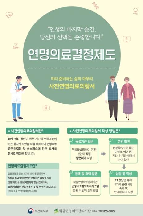 현재 의성군 관내 사전연명의료의향서 등록기관은 ▲의성군보건소 ▲국민건강보험공단 의성군위지사 ▲의료법인제중원제남병원 ▲의성·금성·안계노인복지관으로 총 6곳이며, 기타 자세한 사항은 의성군보건소로 문의하면 된다.