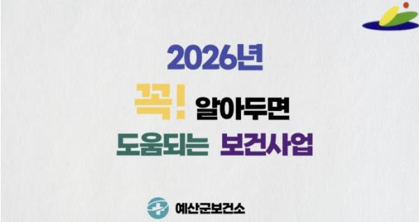 [헬스앤마켓리포터스, 조태익기자] 예산군보건소는 2026년 새해를 맞아 군민에게 필요한 보건사업 정보를 알기 쉽게 전달하기 위해 보건사업 홍보영상을 제작했다고 밝혔다.
