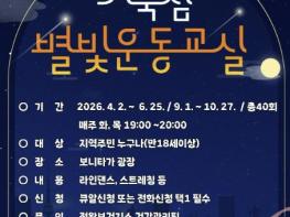 ‘거북섬 별빛운동교실’은 상반기에는 4월 2일부터 6월 25일까지, 하반기에는 9월 1일부터 10월 27일까지 매주 화ㆍ목요일 저녁 7시부터 8시까지 진행된다. 만 18세 이상 지역주민이면 누구나 참여할 수 있다. 수업은 관내 운동 전문 강사가 라인댄스와 스트레칭을 지도해 참가자들이 안전하고 즐겁게 운동에 참여할 수 있도록 지원할 예정이다.