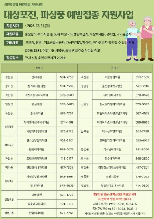 자세한 사항은 천안시 서북구·동남구보건소 누리집에서 확인할 수 있다.